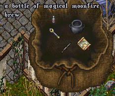 In all, the totaling reward on this occasion is: a cauldron, a bottle of magical moonfire brew, a magic kryss(Supremely accurate, durable, might, clumsiness: 40), an adeptly-drawn treasure map, a magic wand(Weakness: 40), 30 of each reg, and 2,116 gold.