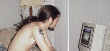 Skye snuck a few pics o' me here and dare. Here, we see Outy...Err, me, enjoyin' some good ol' ICQ talkey.
