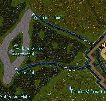 This location is inside of the hidden mage valley, Southwest of Trinsic. From the Trinsic gates, walk Southwest to the mountain and feel around it's North tip for the hidden entrance. Zeefzorpul hangs out inside a ruined tower in the valley.
