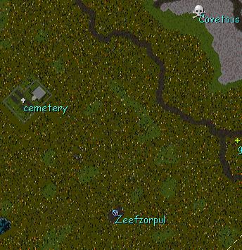 This location is Southwest of Vesper in some ruins. Either head Southwest of Vesper, or go to the Cove cemetary and head East from there. Don't confuse the other Zeefzorpul location in the area with this one. There is another Zeefzorpul location just a few screens West of this one. Make sure you're at the ruins that are most East.