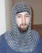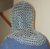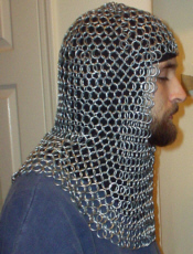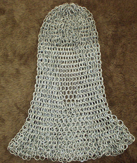 Description: This is our standard, heavy-gauge coif. It features a one-size-fits-all head cover, a cinched facial opening so that the mail covers all the way up to the chin, and a medium-sized mantle. Also, make sure you read the Careful Use statement in regards to this item.