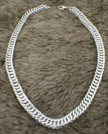 Description: A grand necklace done in the popular X-weave. Every beautiful inch is handmade. It measures 17.5" from hook to clasp and goes with just about anything!