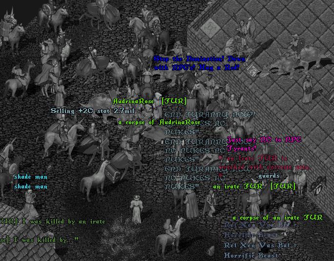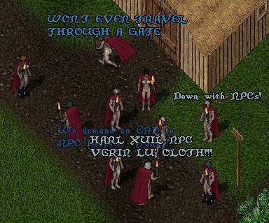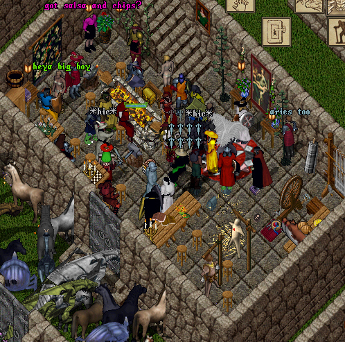 All this week, we are having a TUR Reunion in TUR Village. This is not a single event with a date and time, but rather a preiod of time in which Outy is actively contacting TURs old, current, and new and requesting that they visit the village. TURs from every realm and time period are encouraged to come visit us in the village! If you no longer have an active account, there are several promotions for free short-term account reactivation and game time available at uo.com. And for directions to the village, see the TUR Village Page We hope to see many TURs this week!