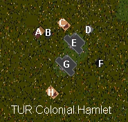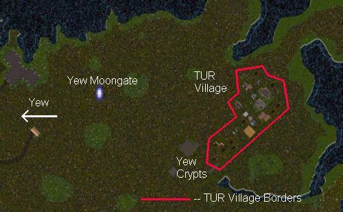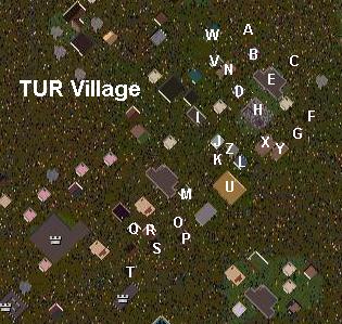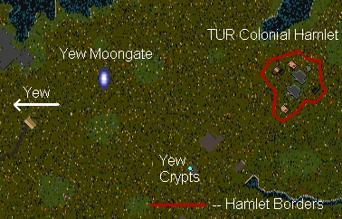 Directions: In Trammel, the fortress is located NorthEast of the city of Britain, West of the Covetous mountain range, and East of the Compassion shrine desert. The easiest way to find it on foot is to start in Britain and head Northeast, along the road, then accross the swamp, and continue Northeast once out of the swamp even though the road goes North. You should find it 2 or 3 screens over from the Southwest corner of the vast clearing. It is easy enough to spot once you're there--A castle with the red and black TUR house sign. Runes can also be found in most establishments in TUR Colonial Hamlet.